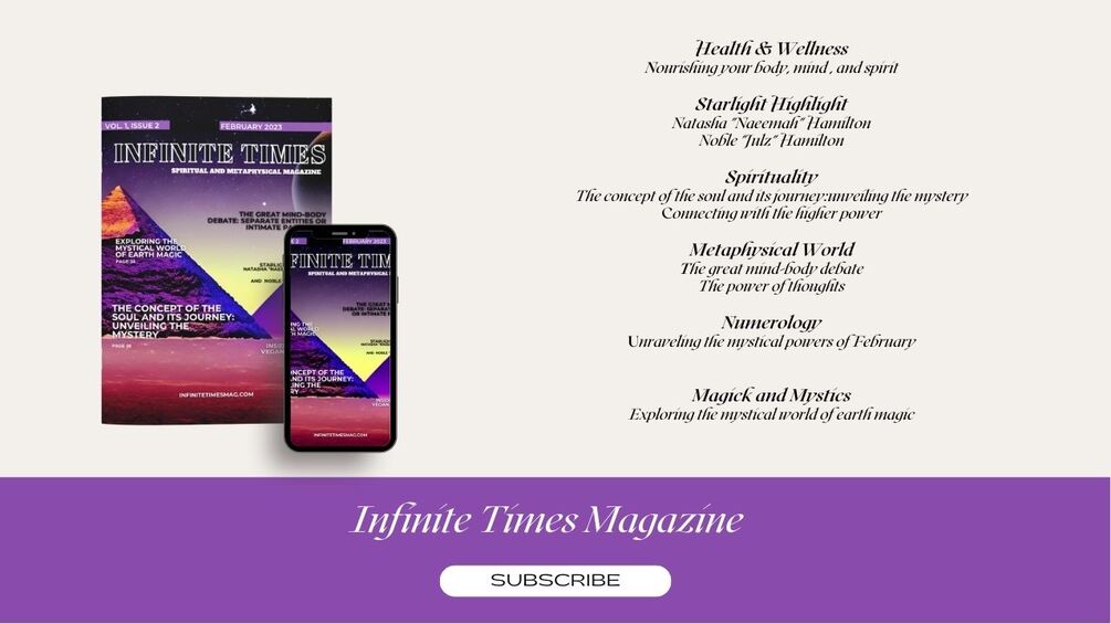 This issue of the magazine is dedicated to Health & Wellness and focuses on nourishing the body, mind, and spirit. The Starlight Highlight features interviews with Natasha "Naeemah" Hamilton and Noble "Julz" Hamilton, while the Spirituality section delves into the concept of the soul and its journey, and connecting with a higher power. The Metaphysical World section explores the mind-body debate and the power of thoughts, while Numerology unravels the mystical powers of February. Finally, the Magick and Mystics section takes readers on a journey into the mystical world of earth magic. Overall, this issue offers a range of insights and perspectives on how to achieve holistic well-being.